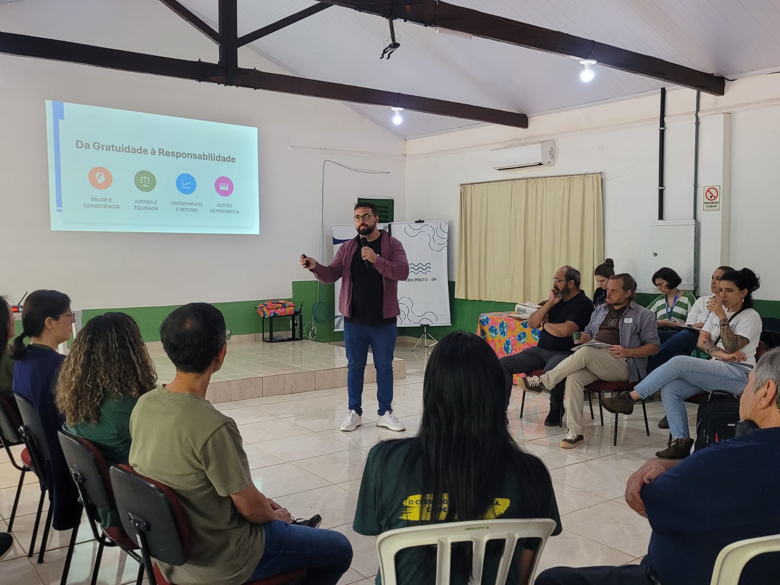 No âmbito técnico, o pesquisador Eduardo Cyrino, da Embrapa Cerrados, ministrou palestra sobre estudos recentes do Índice de Qualidade da Água no meio rural, abordando desafios e oportunidades para a conservação hídrica. Em seguida, Leonardo Hatano, coordenador pedagógico da Escola Parque da Natureza, compartilhou boas práticas de educação ambiental implementadas na Área Ambiental Granja do Ipê.